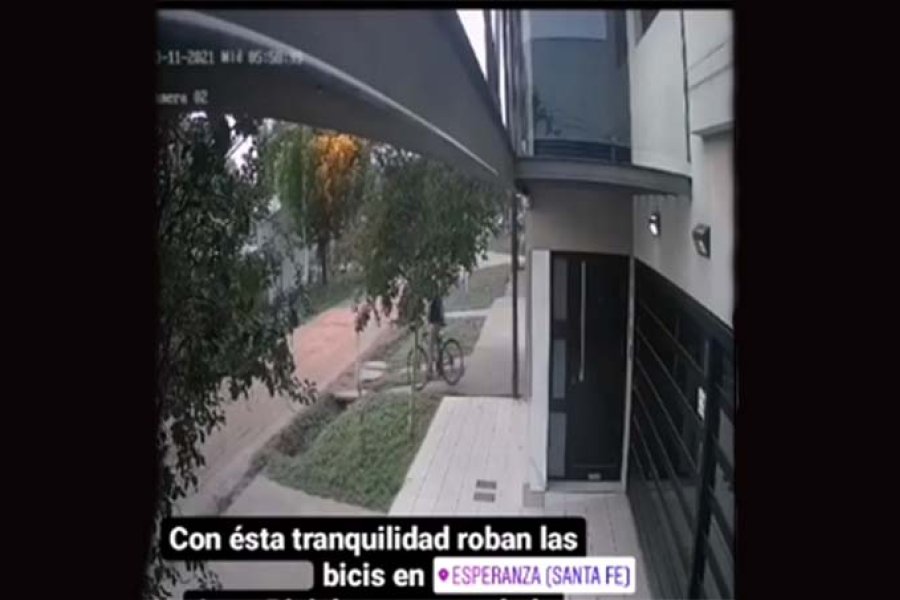 Esta vez le tocó a un joven que dejó su bicicleta SLP atada con candado dentro de un complejo de departamentos de barrio Oeste. Una cámara de una casa vecina permite ver como el ladrón se lleva la bicicleta.