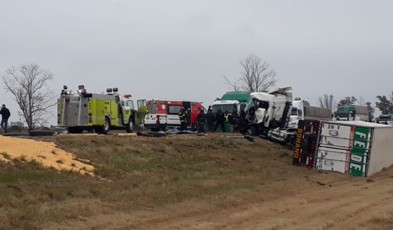 Producto del impacto, que ocurrió sobre el kilómetro 228 de la Ruta Nacional en cercanías del INTA, uno de los choferes perdió la vida.