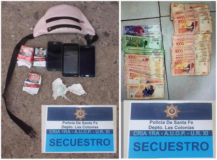 Un segundo procedimiento tuvo lugar en la cuando personal policial de la Comisaría Primera URXI realizaba tareas de patrullajes por barrio sur y decidió identificar a un hombre de 26 años y una mujer de 24 años, ambos con domicilio en Esperanza, que se encontraba en actitud sospechosa en la esquina de calles Moreno y Soler de esta ciudad. Ambos debieron exhibir a los uniformados sus pertenencias, estableciéndose que la mujer llevaba dentro de una riñonera sustancias presumiblemente estupefacientes, por lo que se dio inmediata intervención a la Brigada Antinarcóticos, trasladándose el procedimiento policial y los involucrados a la Dependencia Policial para ser puesto a disposición de la Justicia e investigar la procedencia de los elementos que llevaban consigo.
