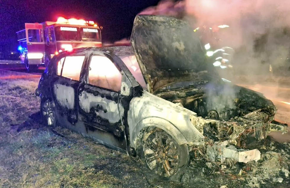Al mismo horario, en ruta 6, jurisdicción de Pujato Norte, un automóvil tomó fuego. El conductor no sufrió lesiones y el fuego fue sofocado por Bomberos Voluntarios de Esperanza.