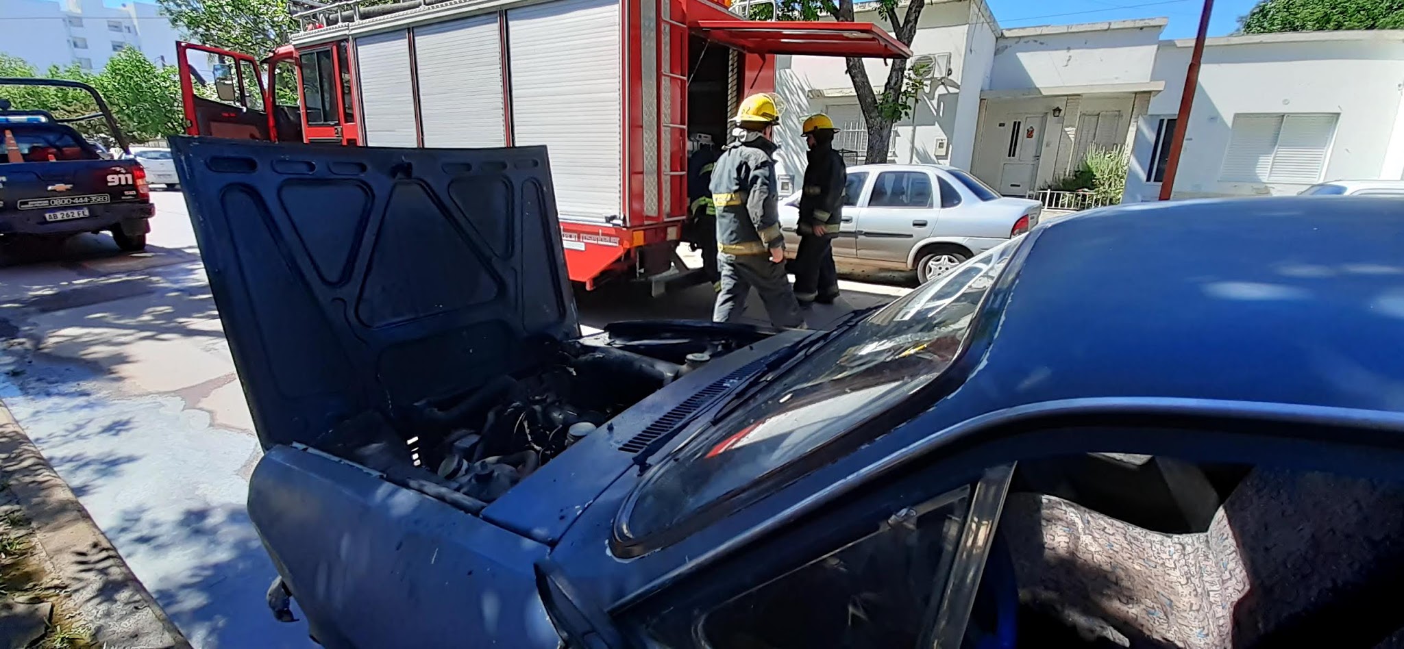 Este lunes en la esquina de Chacabuco y Alberdi un Renault 12 debió detener su marcha de inmediato por un incendio que se generó en la parte delantera del mismo.