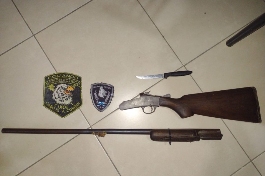 Un sujeto al advertir la presencia policial en General Paz y Pittier, intenta deshacerse de sus pertenencias. La policía identifica una escopeta y un cuchillo de cocina. El hombre domiciliado en la zona de las vias del ferrocarril, al oeste de la ciudad, fue detenido.