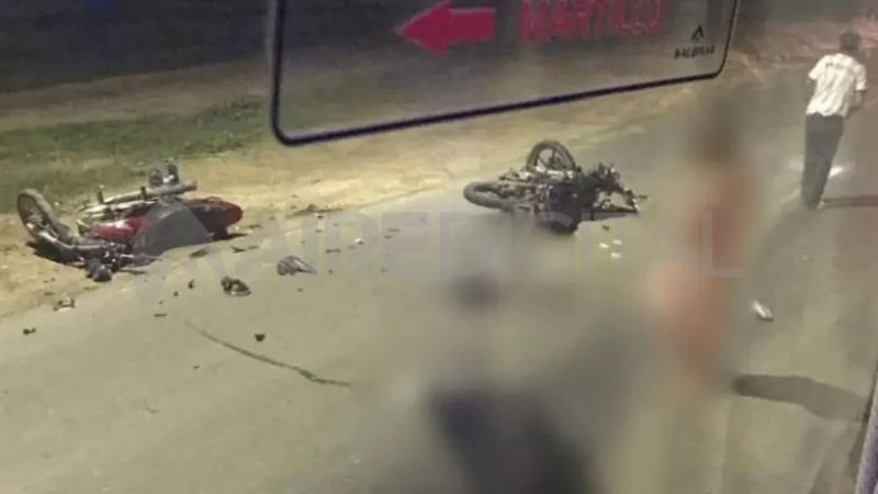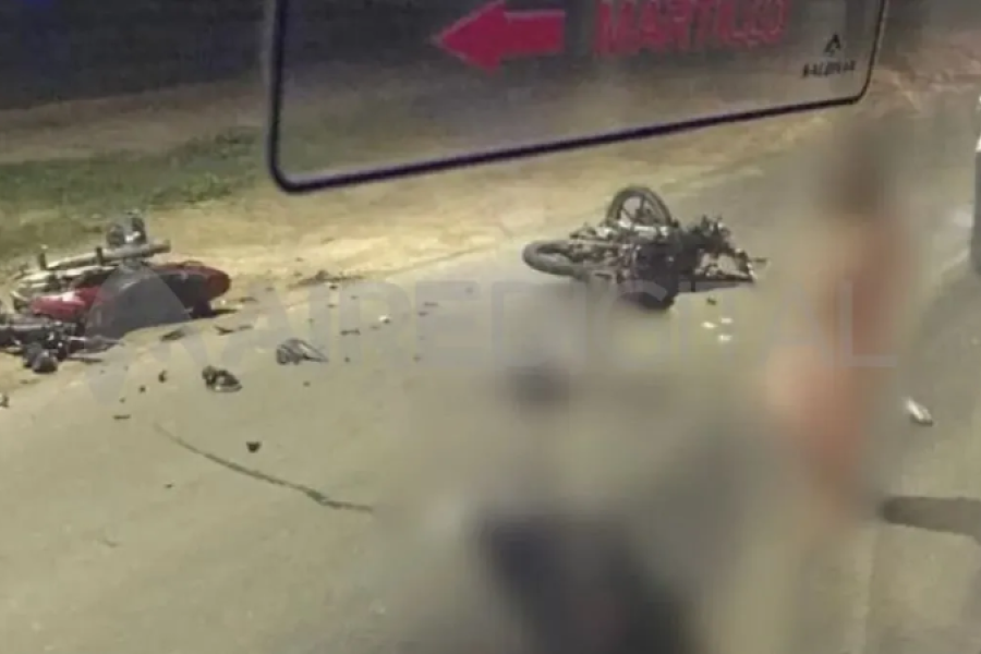 El fuerte choque entre dos motos se produjo unos metros antes de la curva al ingreso a la mencionada localidad, este miércoles cerca de las 21.