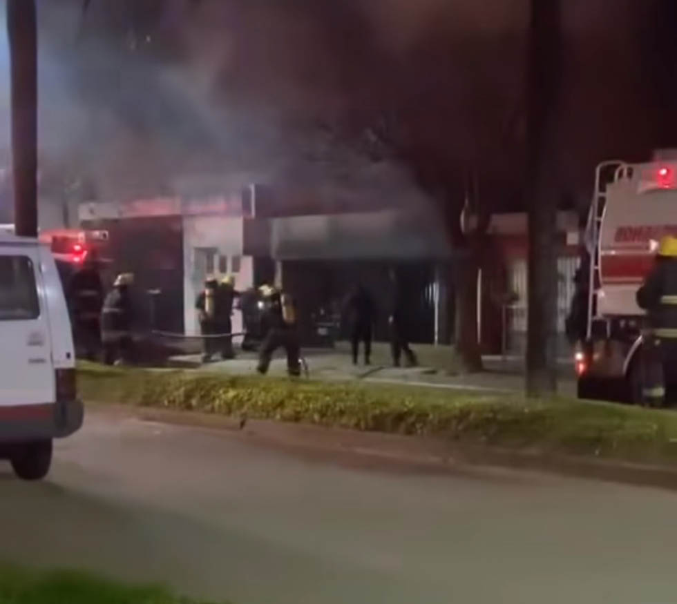 El incendio se produjo en una vivienda que tenía en su ingreso una cochera donde estaban estacionados algunos vehículos. Bomberos trabajó para controlar el foco ígneo desde el ingreso principal y avanzó también por los techos.