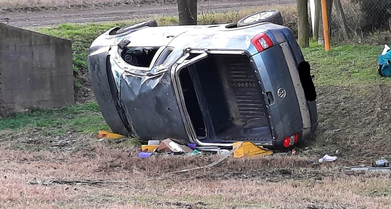 Por causas que se tratan de establecer el accidente de tránsito terminó con el vuelco de una camioneta utilitaria volkswage con dos ocupantes.