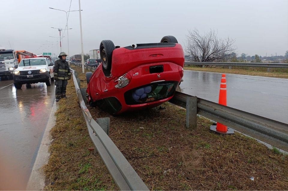 Una mujer perdió el control de un Peugeot 208, que quedó dado vuelta en el cantero central del corredor, a la altura de la casa bomba N°6.