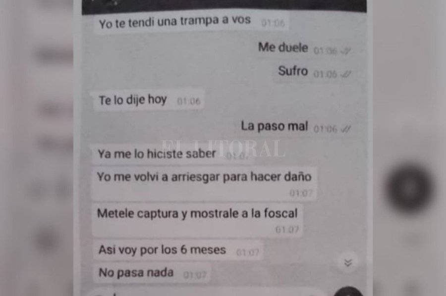 Minutos más tarde, volvió a comunicarse con ella para enrostrarle que le había tendido "una trampa" y asegurarle que se había vuelto a "arriesgar para hacer daño", ya que sabía que tenía prohibido acercarse a ella, tanto por orden de un juez de familia como en el marco de una causa penal. "Metele captura y mostrarle a la fiscal, así voy por los 6 meses" de prisión, le escribió, demostrando una actitud que se repite en la mayoría de este tipo de violentos, la idea de que 'no les importa nada', no le temen a las consecuencias con tal de hacer sufrir a sus ex parejas.
