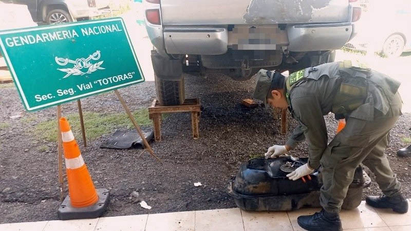 Gendarmes del Escuadrón 46 #RosarioVictoria #SantaFe incautaron 27 kilos de cocaína, como resultado de dos procedimientos. 1⃣ En el primer operativo, los funcionarios descubrieron 21 kilos con la droga acondicionados dentro del tanque de combustible de una camioneta. pic.twitter.com/sl7xB6qSKL