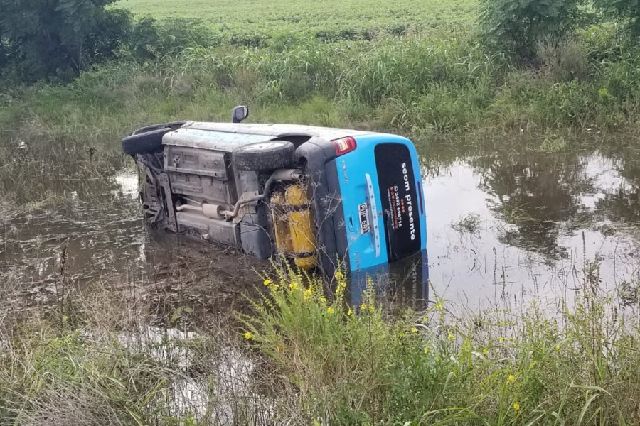 Allí un automóvil utilitario perteneciente al gremio rafaelino SEOM pasó por un sector de la ruta con mucha agua acumulada, el conductor no pudo controlarlo y tras hacer un efecto aquaplaning el vehículo salió de la carpeta asfáltica y terminó en la banquina.