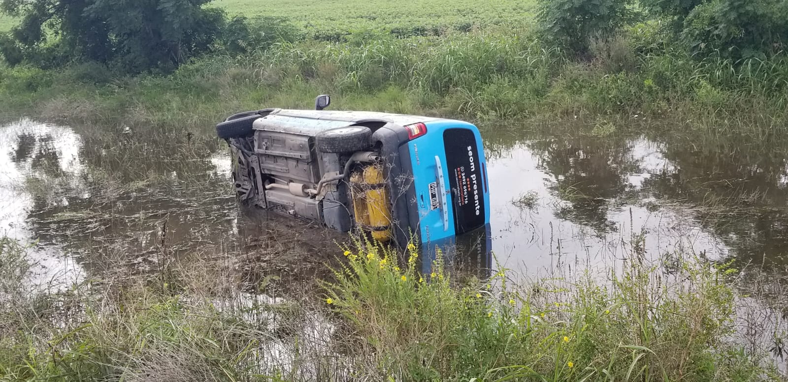 En el lugar había agua acumulada y el conductor que venía atado con su cinturón de seguridad, pudo salir por sus propios medios de la cabina.