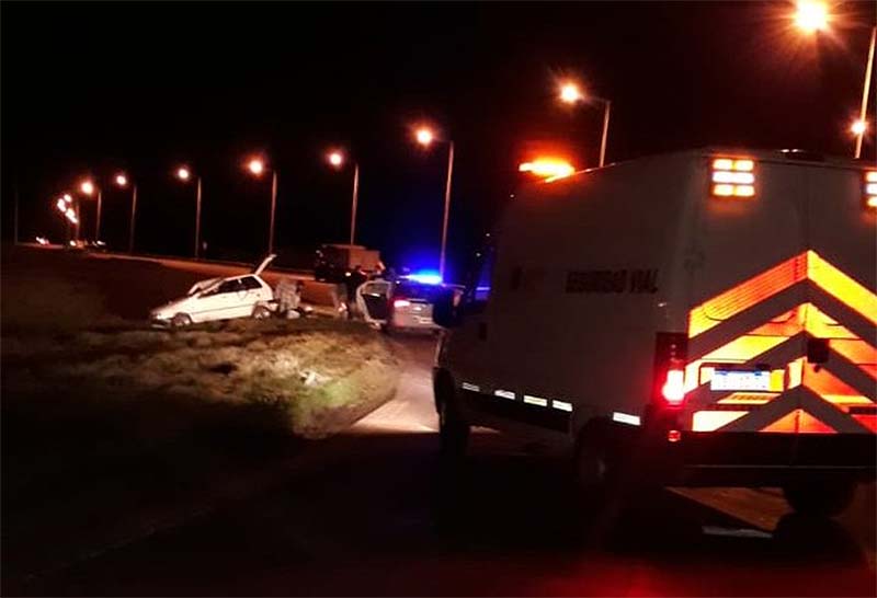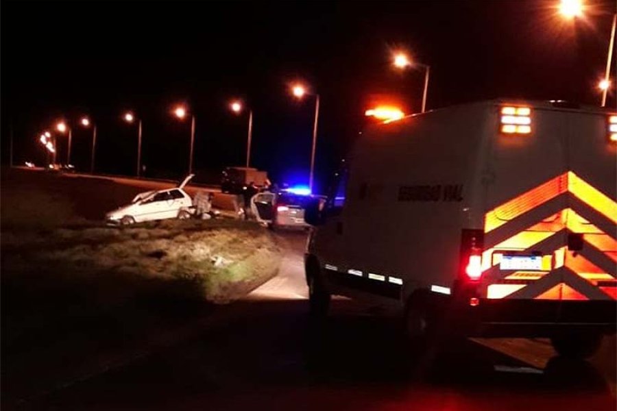 Pasadas las 5 horas de este lunes, un Fiat Uno color blanco volcó en la rotonda de Autovía 19 y Ruta 10, ingreso a Santa Clara de Buena Vista.