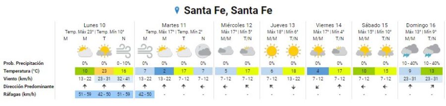 El Servicio Meteorológico Nacional incluyó al centro de Santa Fe en una amplia zona de cobertura donde los vientos del sur o sudoeste se harán sentir con ráfagas de hasta 70 km/h.