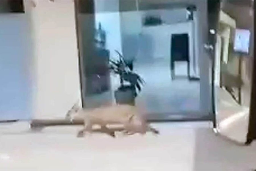 El felino fue visto salir de la zona de cajeros automáticos de un banco y recorrer la calle principal de la localidad. Luego fue rescatado por la policía y trasladado a Granja La Esmeralda.