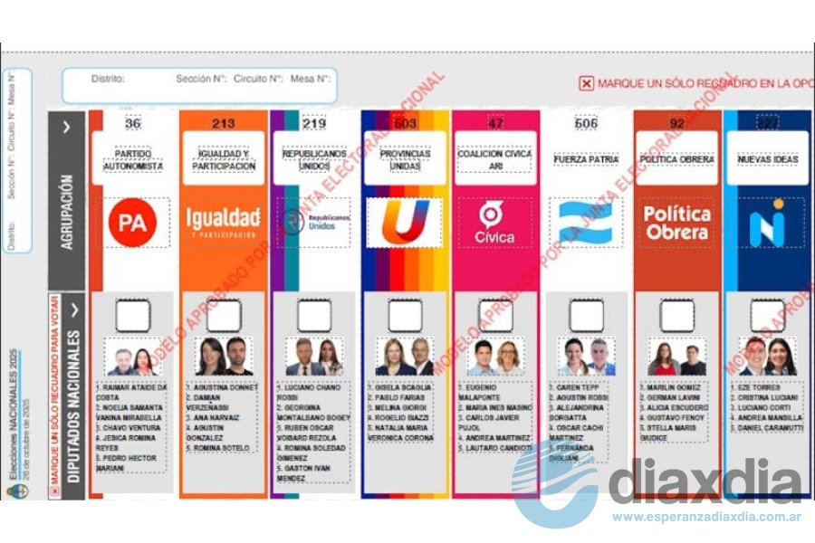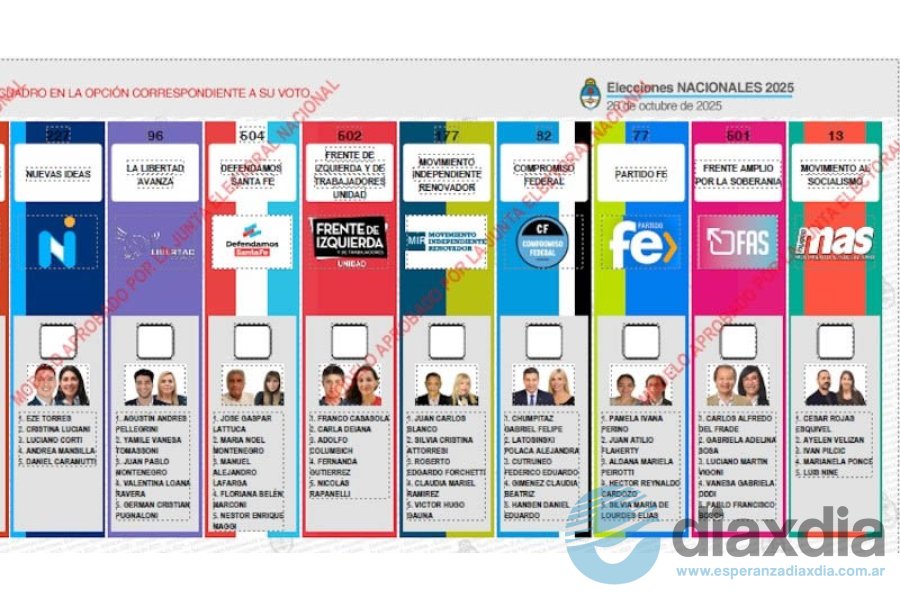 En agosto se conocieron los modelos de prueba y ya este miércoles se difundió la versión final, con el orden de las listas. En Santa Fe son 16 los frentes que compiten por los nueve escaños en juego en la Cámara de Diputados. En la BUP, se ubican una al lado de la otra, a diferencia de las boletas locales donde los candidatos se muestran en listas verticales. Se trata, entonces, de una papeleta rectangular larga.