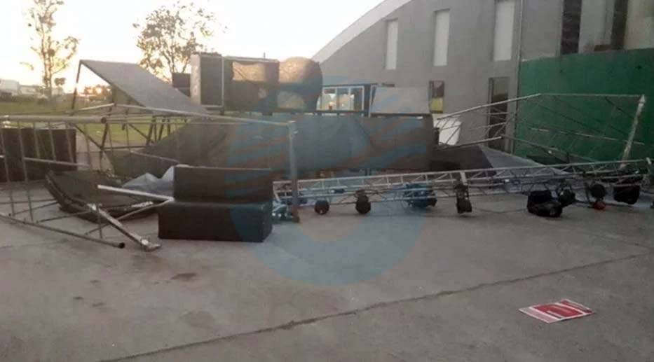 "Las fuertes ráfagas de viento que había en ese momento hicieron que se embolsase una lona que cubría los bafles y se desplomara al suelo dando en la humanidad de los jóvenes que estaba en ese sector", relató uno de sus dueños a Rafaela Noticias.
