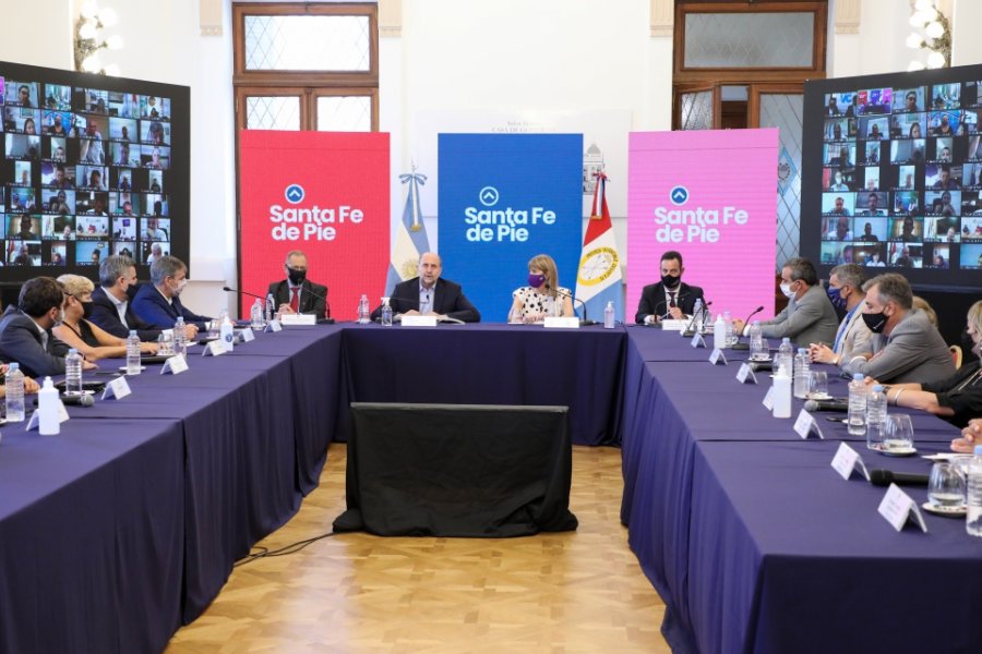 En tanto, que los restantes intendentes y presidentes comunales de la provincia de Santa Fe participaron de la reunión por videoconferencia.