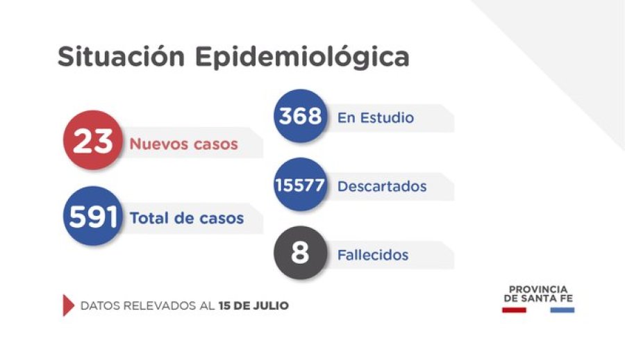 Además, la provincia sumó 23 casos de Covid-19. Los nuevos infectados corresponden a las localidades de: 12 de Rosario, 3 de Zavalla, 3 de Santa Isabel, 1 Coronda, 1 de Pérez, 1 de Granadero Baigorria, 1 de Santa Teresa y 1 de Venado Tuerto.