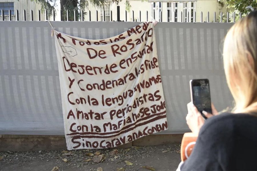 "A todos los medios de Rosario… Dejen de ensuciar y condenar a los pibes con la lengua porque vamos a matar periodistas. Con la mafia no se jode". El cartel con esta amenaza apareció este martes a la mañana colgado de las rejas del frente de Canal 5 de Rosario. Las autoridades de la emisora, que pertenece al grupo de Telefé Noticias, tenían previsto presentar una denuncia en la Fiscalía para que se investigue esta amenaza de muerte, que generó conmoción entre los periodistas de esta ciudad.