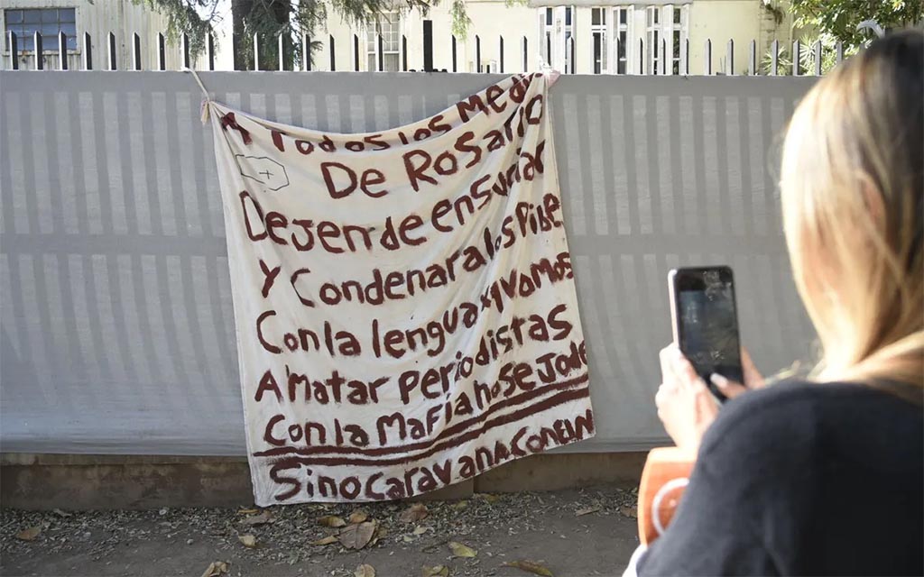Un cartel con una amenaza de muerte hacia periodistas escrita a mano en una tela y firmado con la frase "con la mafia no se jode" fue dejado este martes en la sede del canal Telefe Rosario, ubicada en la costanera sur de esa ciudad santafesina.