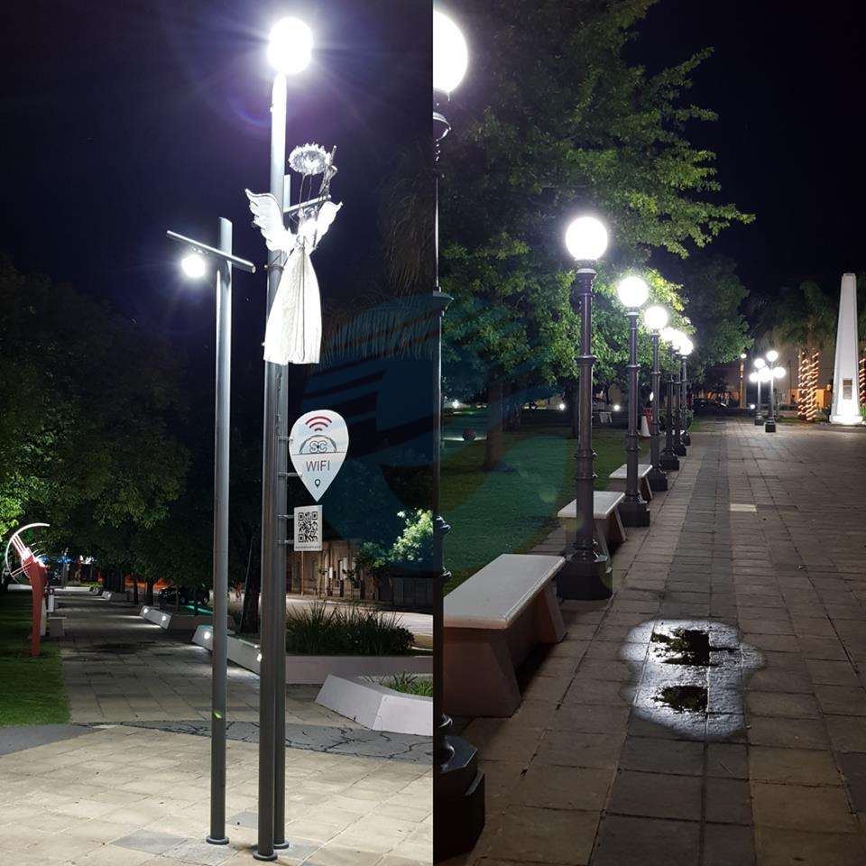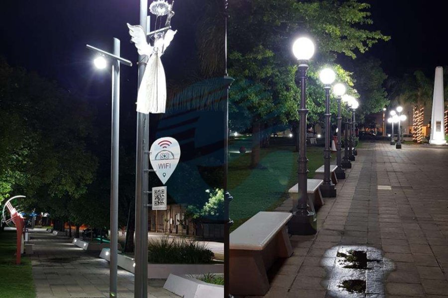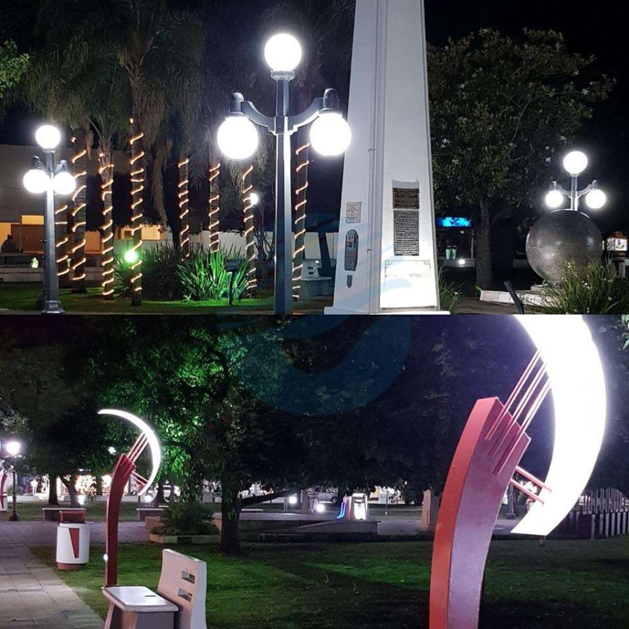 El Gobierno de San Carlos Centro finalizó los trabajos para la renovación total de la iluminación de la Plaza San Martín y su entorno.
