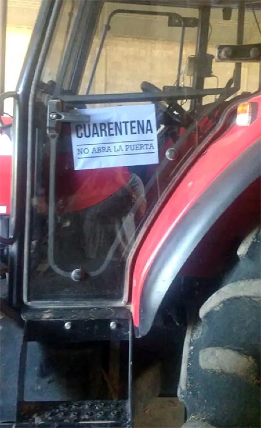 Así, con este trasfondo, y siguiendo protocolos para evitar la propagación de la enfermedad, transcurrió esta semana para el campo. Una postal impensada se repitió: carteles en cabinas de tractores y cosechadoras indicando que allí solo puede estar el operario, preservación de distancias, desinfecciones y hasta algunos maquinistas transitando los lotes con barbijos para extremar recaudos. En Armstrong, por ejemplo, Carlos Esteban Strólogo aplicó varias medidas precautorias en esa línea.