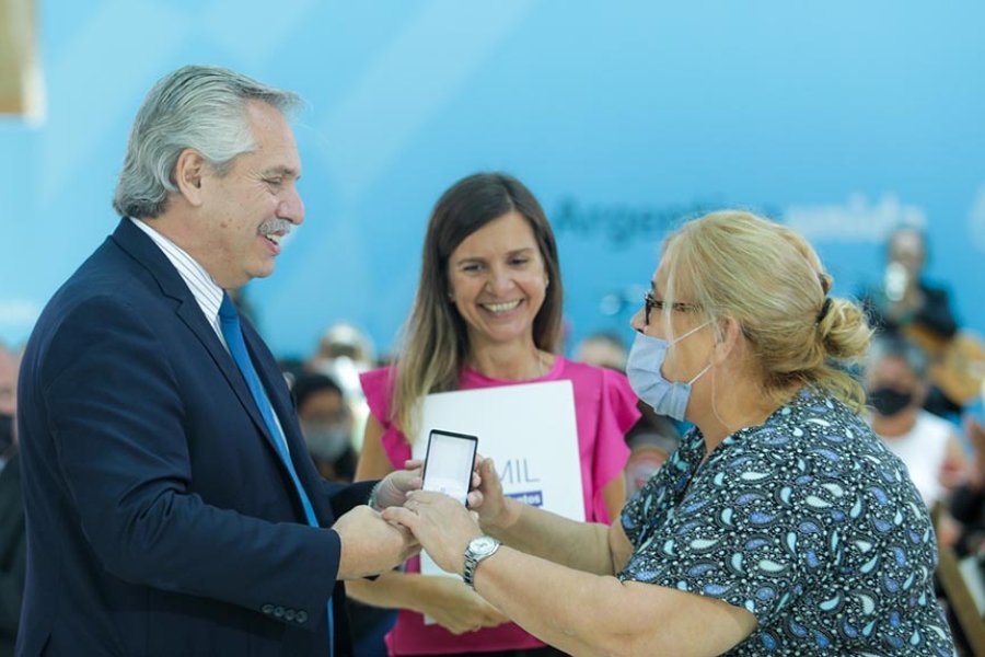Asimismo, hoy el Jefe de Estado entregó la jubilación 50.000 por el Reconocimiento de Aportes de Tareas de Cuidado que se puso en funcionamiento el 19 de julio de este año a través del Decreto 475/2021, y que permitió que miles de mujeres en edad de jubilarse, que son madres y no contaban con los 30 años de aportes necesarios pudieran sumar años de aportes por cada hijo o hija.