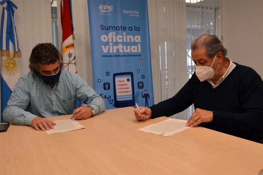 El Presidente de la EPE, Mauricio Caussi, junto al titular de la FISFE de Santa Fe, Víctor Sarmiento, firmaron en la sede de la administración central, un convenio marco que procura una mejor utilización de los recursos energéticos.