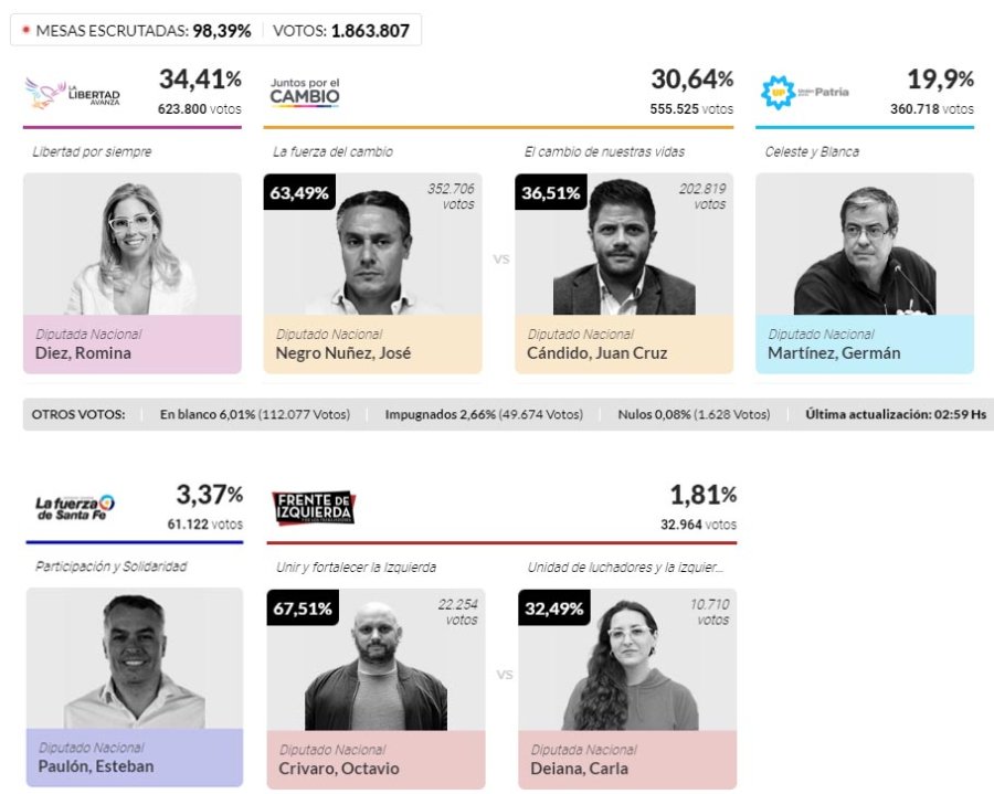 La Libertad Avanza se impuso en la elección de la categoría diputados nacionales en la provincia de Santa Fe con vistas a la selección de candidatos para los comicios del 22 de octubre donde se renovarán diez bancas para el Congreso de la Nación.