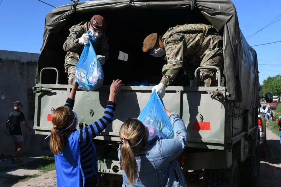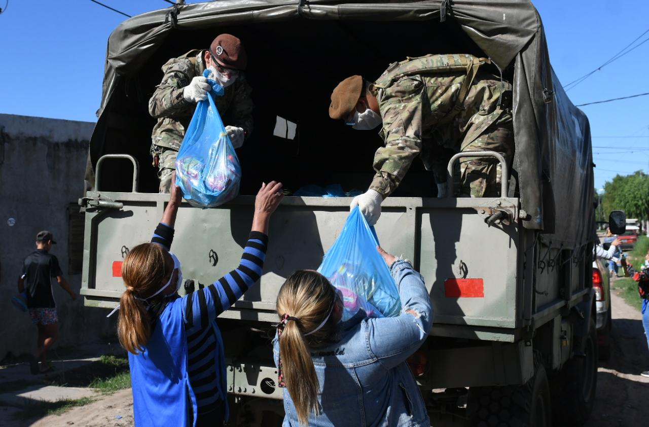El Ministerio de Defensa, que conduce Agustín Rossi, informó que en el día de la fecha hombres y mujeres del Ejército Argentino repartieron kits de limpieza y alimentos en el barrio Santa Rosa de Lima, como respuesta a la emergencia por la pandemia del coronavirus Covid-19.