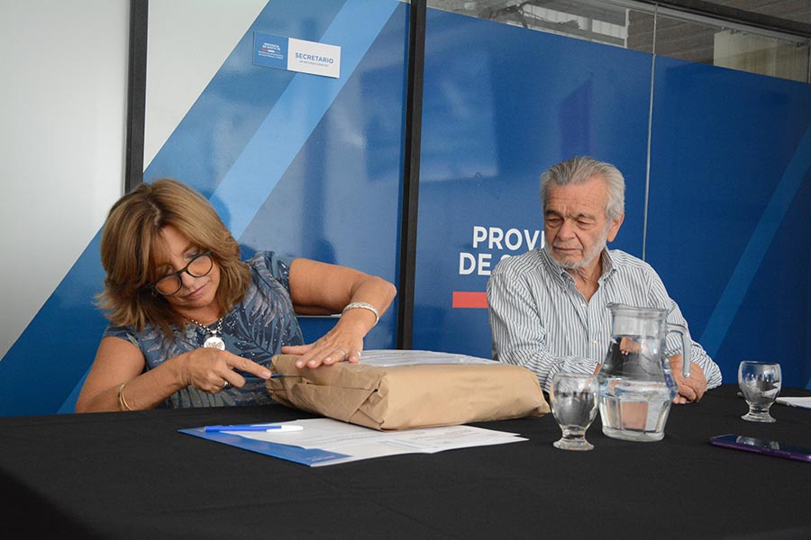 La ministra de Infraestructura, Servicios Públicos y Hábitat, Silvina Frana, junto al secretario de Recursos Hídricos, Roberto Gioria, encabezaron la apertura de sobres para las obras de ampliación, operación y mantenimiento de la Red Telemétrica del Sistema de Predicción Hidrológica de la provincia de Santa Fe.