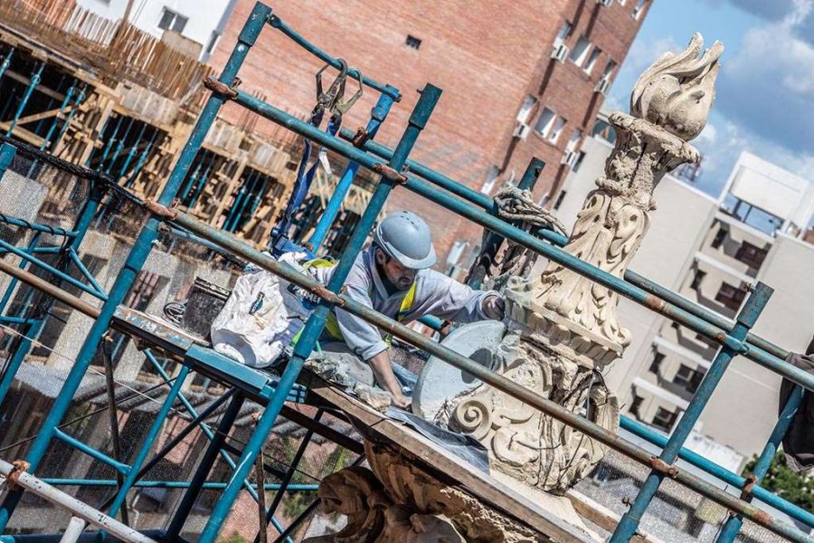 Los rubros más destacados en ejecución actualmente son: restauración in situ de ornamentos que se encuentran en buen estado de conservación; toma de moldes in situ de los ornatos que deben ser