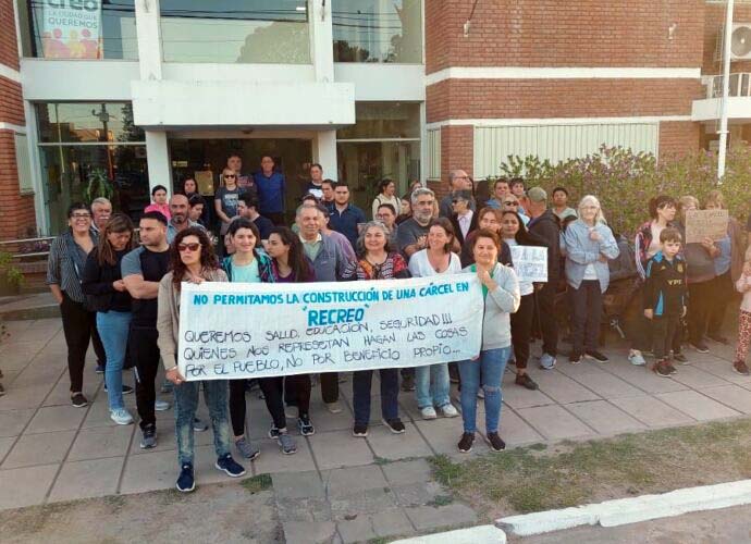 Un grupo de vecinos, menor al del jueves, se reunió frente al edificio municipal de Recreo. El reclamo es el mismo: “no a la unidad penitenciaria” que busca realizarse en el predio de 9 hectáreas donde actualmente funciona la colonia penal.