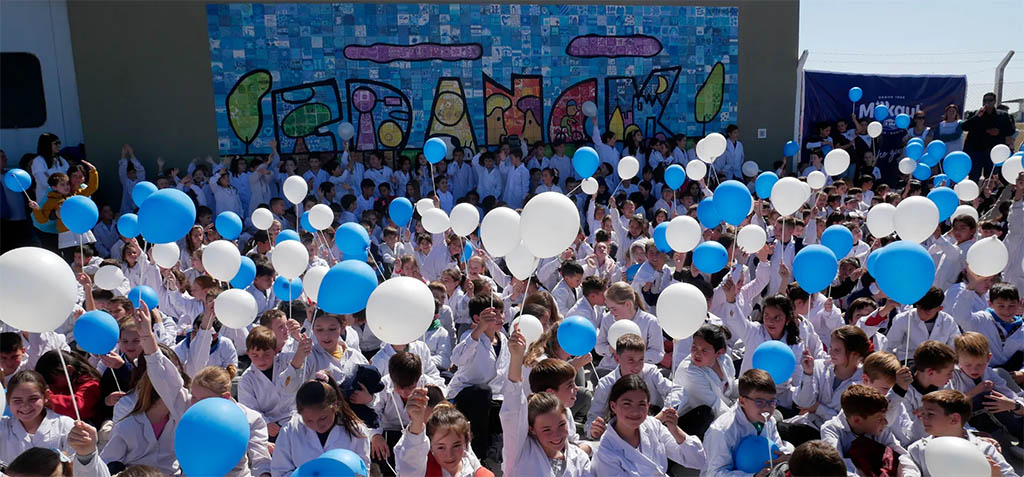 La localidad de Las Colonias cumplió 153 años y la firma láctea Milkaut lo festejó con un mural elaborado por alumnos de la escuela primaria N° 321 Joaquín V. González.