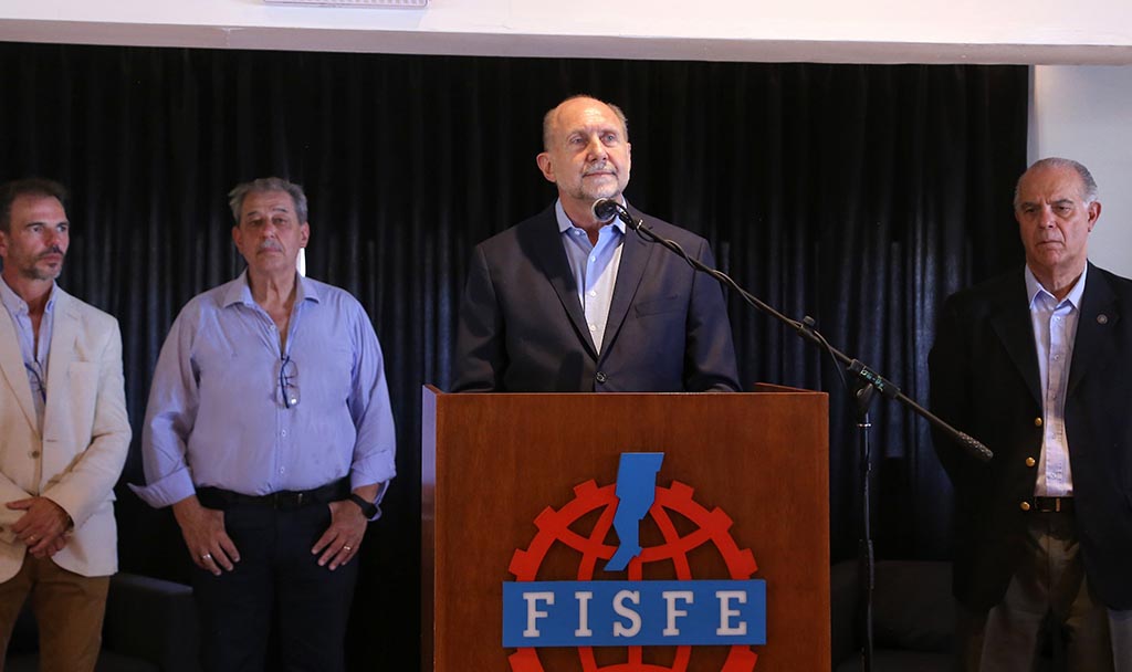 El gobernador Omar Perotti participó este miércoles, en Rosario, del encuentro de fin de año de la Federación Industrial de Santa Fe (Fisfe), donde enumeró las obras en rutas, gasoductos e Internet que ayudan a la radicación de industrias en más lugares de la provincia.