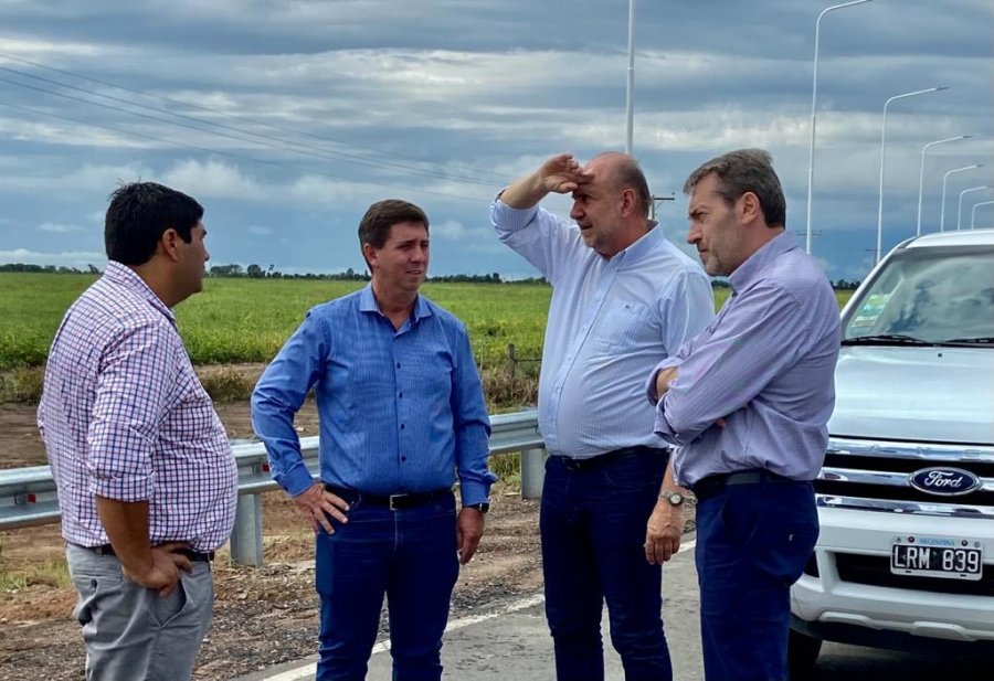 Acompañado del senador Ruben Pirola y autoridades de Vialidad Provincial el gobernador recorrió los trabajos de pavimentación de la ruta de acceso a esa localidad de Las Colonias desde la ruta 4.