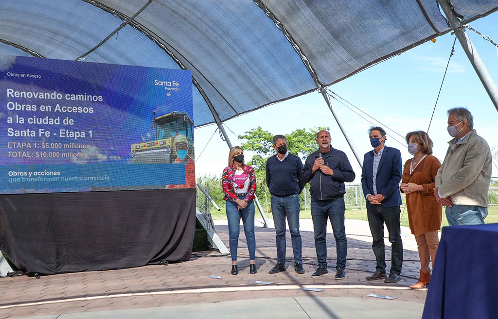 El gobernador de la provincia, Omar Perotti, aseguró hoy que después del esfuerzo realizado por todos los santafesinos y santafesinas durante la etapa más dura de la pandemia, el gobierno seguirá “acompañando al que trabaja, el que invierte y el que produce”. Lo dijo durante el acto que encabezó junto al ministro de Obras Públicas de la Nación, Gabriel Katopodis, en el cual se firmaron convenios sin precedentes en la historia para mejorar los accesos viales a la ciudad de Santa Fe mediante un ambicioso programa de inversión de 10.000 millones de pesos.