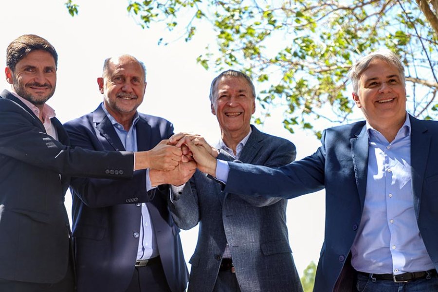 A casi un mes de las elecciones Generales de Santa Fe, este jueves se concretó la primera foto oficial entre el actual gobernador, Omar Perotti y quien lo sucederá a partir del 10 de diciembre, Maximiliano Pullaro. Fue en un acto compartido con Juan Schiaretti y Martín Llaryora.