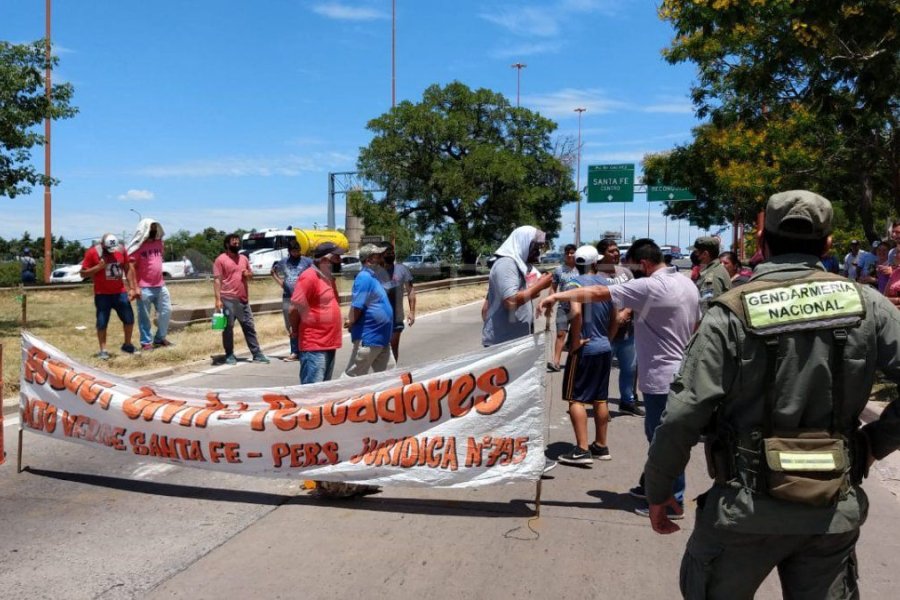 En el Puente Rosario - Victoria también hay un corte de pescadores que provoca muchas demoras y colas de hasta 10 kilómetros. “La provincia todavía no presentó una apelación o un recurso de amparo para que podamos volver a trabajar. Hay 6.400 familias que dependen de la pesca comercial en Santa Fe”, advirtió Jesús Pérez en una entrevista con Aire de Santa Fe. Es uno de los referentes de los pescadores desde el puente rosarino, que se cortó a las 7.30 y todavía no se habilitó.