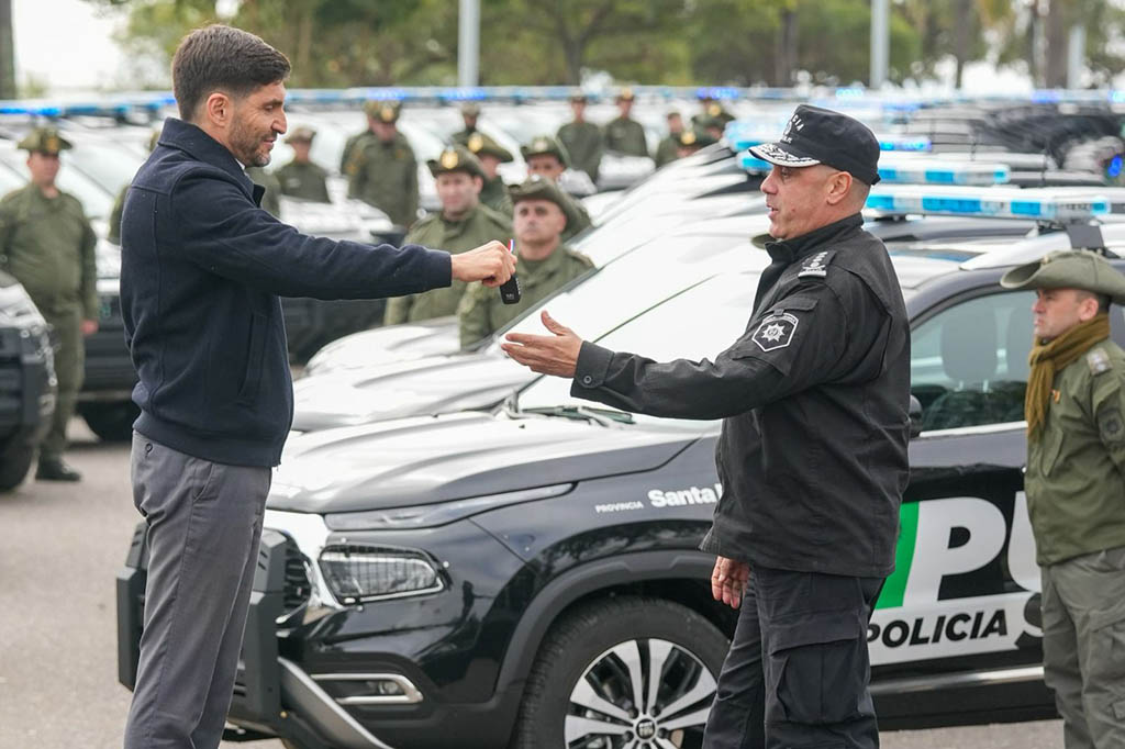 El ministro de Justicia y Seguridad, Pablo Cococcioni, afirmó que “hace un año y medio comenzamos a recuperar la calle para los ciudadanos de bien. Hoy sentimos que finalmente estamos empezando a darles a las fuerzas de seguridad las herramientas que necesitan para trabajar”. Destacó que con la entrega de móviles al departamento La Capital y las fuerzas especiales “llevamos entregados 960 patrulleros, 500 motos y 360 camionetas. Y vienen más incorporaciones antes de fin de año para llegar a cada rincón de la provincia”.