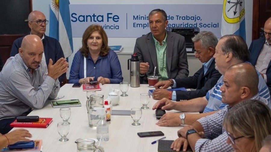 El encuentro con los sindicatos docentes se realizó en el Ministerio de Trabajo, Empleo y Seguridad Social de la ciudad de Santa Fe y del mismo participaron el titular de esa cartera, Juan Manuel Pusineri, y la ministra de Educación, Adriana Cantero, entre otros.