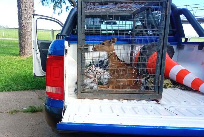 Agentes de la Dirección General de Seguridad Rural de la Sección Frontera rescataron un ciervo que se encontraba dentro de un baño en un predio sobre la Ruta Nacional Nº34 Km. 218 de la ciudad de Rafaela.