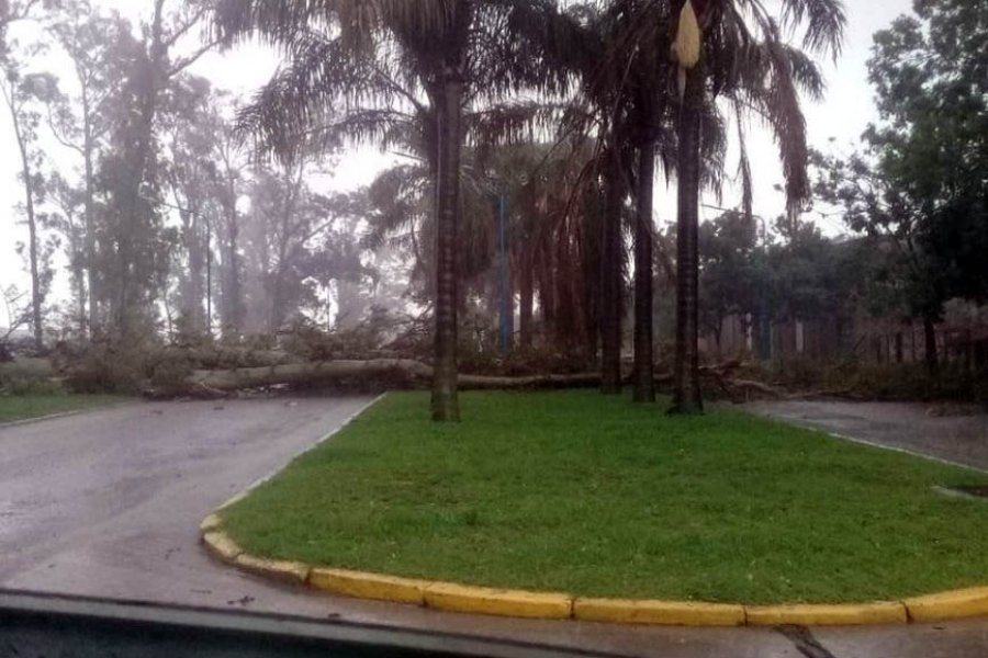 En horas de la siesta de este martes, un fuerte temporal de agua y viento afectó a la localidad de Sa Pereira (departamento Las Colonias) provocando la caída de grandes árboles y el anegamiento de calles.