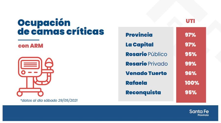 La ocupación de camas que reporta el Ministerio de Salud de la Provincia en su informe diario este sábado no presenta ese detalle. Hasta ayer había 520 pacientes internados en salas generales y 369 en unidades de terapia intensiva, entre los cuales 338 requieren asistencia respiratoria mecánica. Esta mañana el gobernador y la ministra de Salud informaron la ocupación de camas por región: