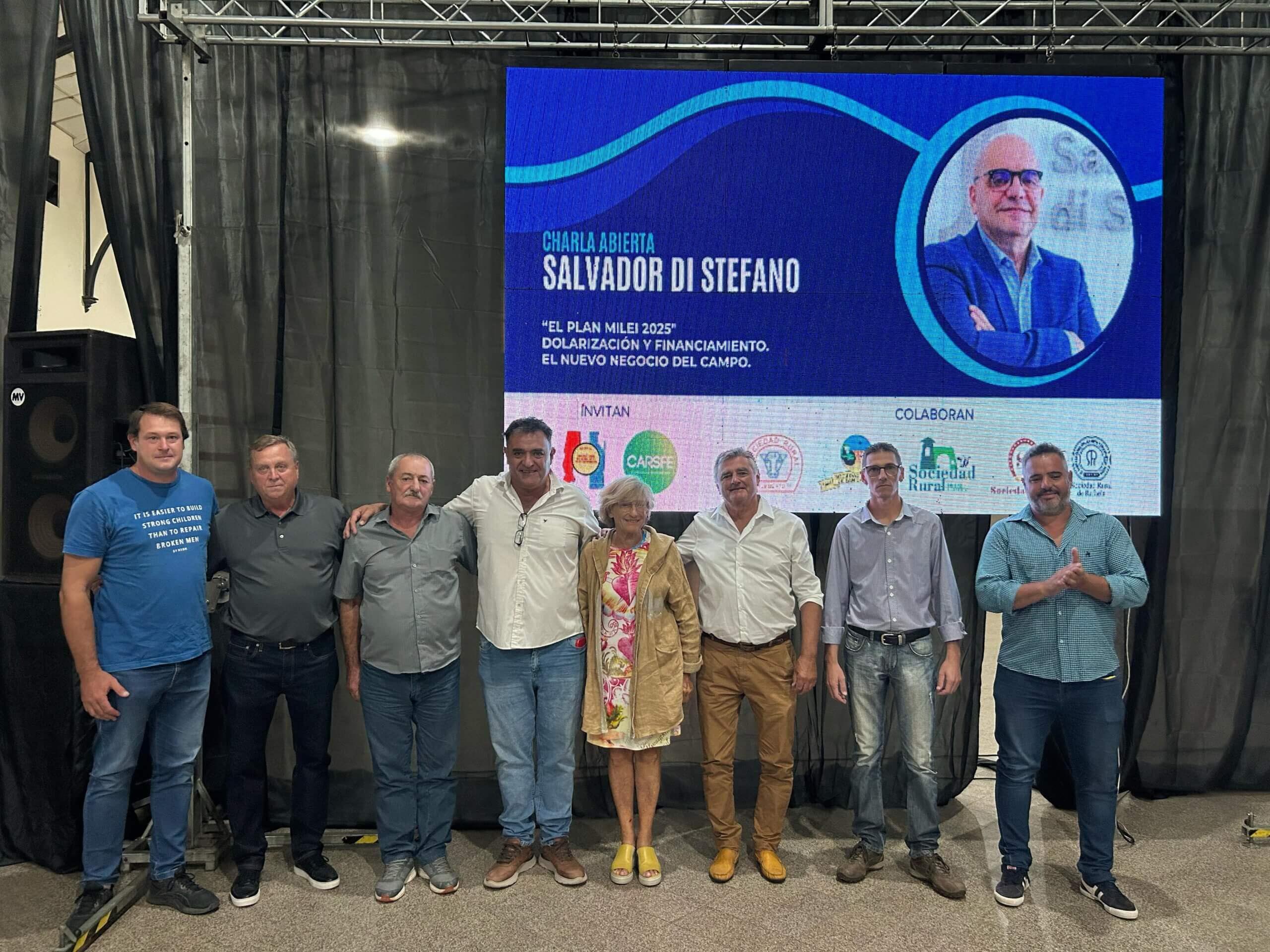 Este miércoles en el Salón de Industrias de la Sociedad Rural de Rafaela más de 400 productores, industriales, comerciantes y personas vinculadas al sector agropecuario participarón de la charla que estuvo a cargo del economista Salvador Di Stefano, sobre “El plan Milei 2025, dolarización y financiamiento, el nuevo negocio del campo”.