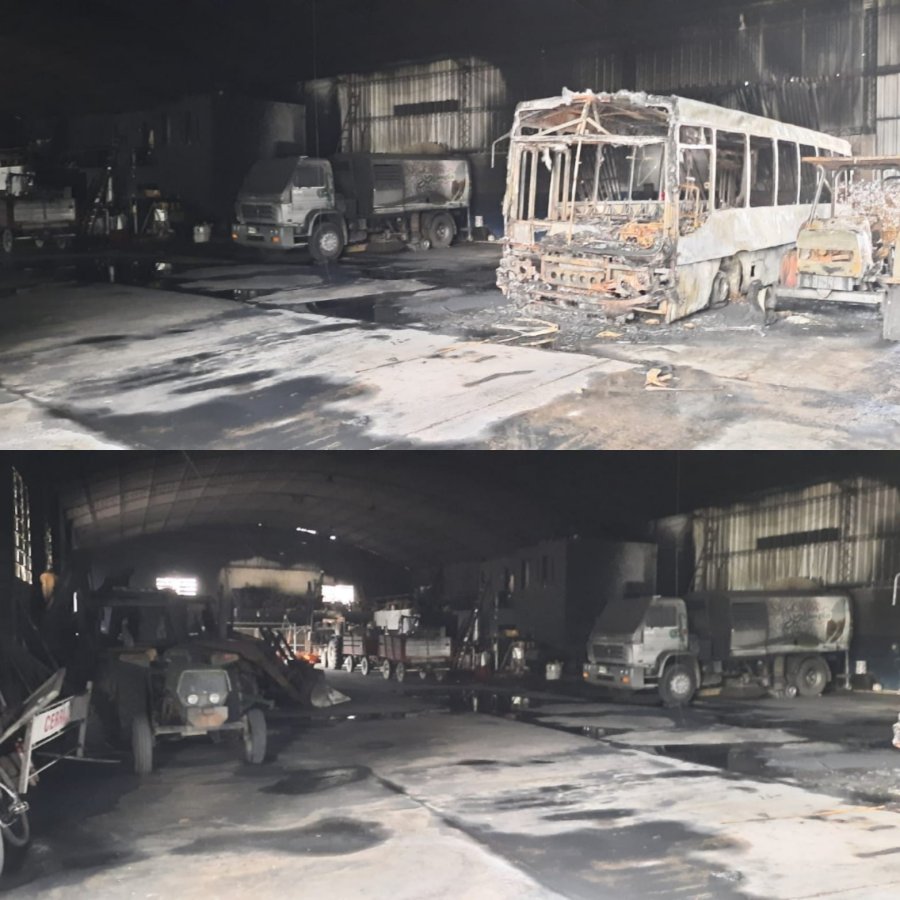 "La elevada temperatura registrada, alrededor de 800ºC según manifestaciones de Bomberos, habría generado daños irreparables en tres Motoniveladoras, tres Retroexcavadoras, un Camión-Barredora, seis Tractores, tres Carros y en gran cantidad de herramientas y maquinarias menores. Además, quedan por evaluar los daños producidos en la estructura edilicia y sus respectivas instalaciones", explicaron.