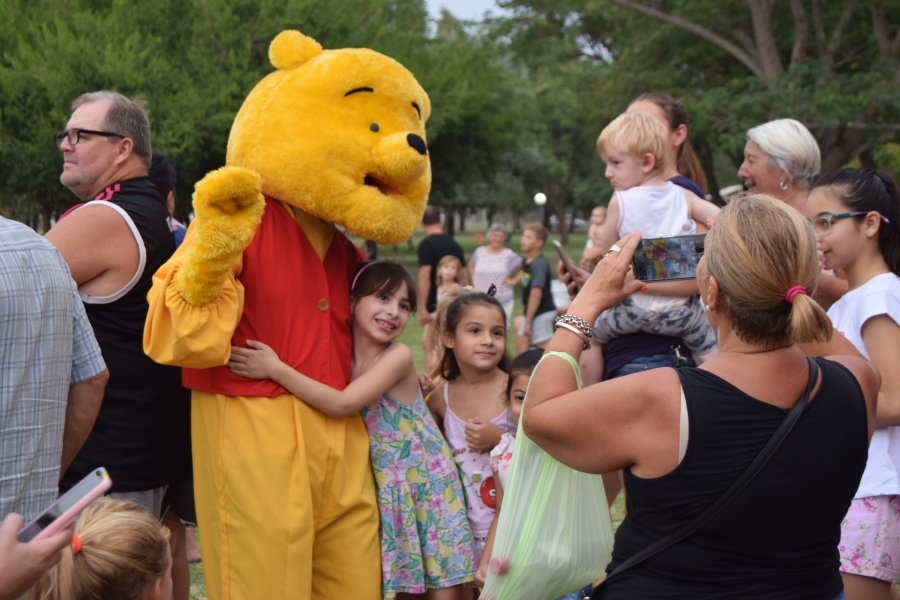 El acto contó con la participación de simpáticos personajes que ayudaron a los niños a compartir un atardecer muy divertido con el carrusel como atracción central.