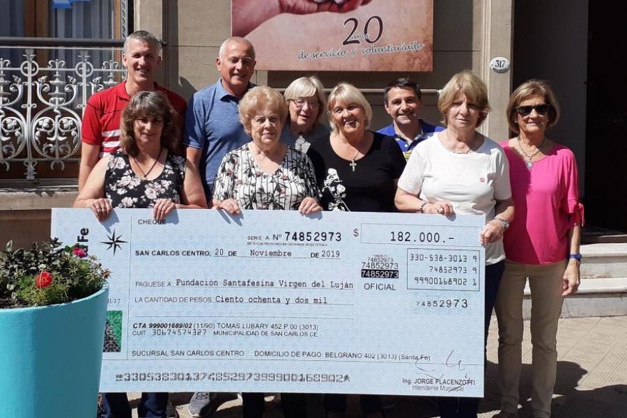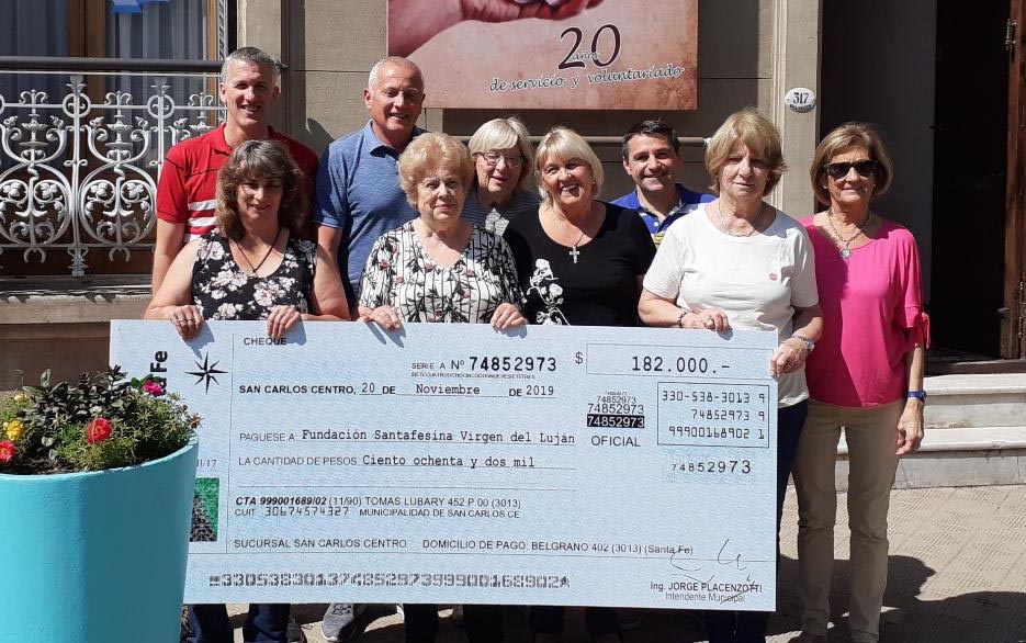 En el marco de la TERCERA “CAMINATA SOLIDARIA EN LA LUCHA CONTRA EL CÁNCER” realizada el Domingo 10 de Noviembre, por cada uno de los participantes que completaron el recorrido, el Gobierno de San Carlos Centro se comprometió a aportar $200 a la Fundación Santafesina Virgen de Luján, como en cada oportunidad, para ser destinados a brindar ayuda a pacientes oncológicos sin recursos de la ciudad.
