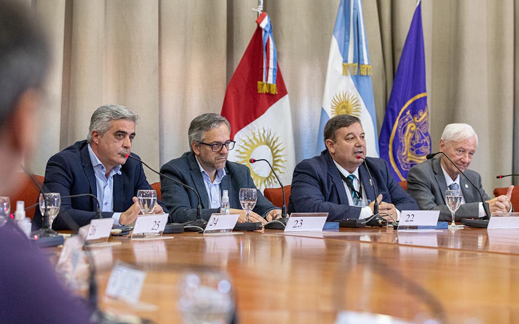La conformación de un Consorcio Internacional de Universidades Públicas fue el objetivo central de un acuerdo rubricado por las universidades nacionales del Litoral, de Córdoba, de Rosario y de la República (Uruguay). El acto se concretó este viernes 1 de julio al mediodía en el Consejo Superior de la UNC en el marco del desarrollo del Congreso Internacional de Universidades Públicas (CIUP 2022) y contó con la participación de los rectores de las mencionadas instituciones: por la UNL, Enrique Mammarella; por la UNC, Hugo Juri; por la UNR, Franco Bartolacci; y por la UdelaR, Rodrigo Arim. Cabe señalar que también participó Jhon Boretto, rector electo de la UNC.