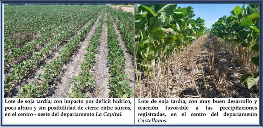 Pero, los cultivares tardíos, como consecuencia de las características climáticas presentaron heterogeneidad en sus desarrollos vegetativos, reproductivos y estados, debido a la ausencia de agua útil en los suelos, los elevados registros térmicos que condicionaron condicionarían su futuro, haciéndolo cada vez más incierto.