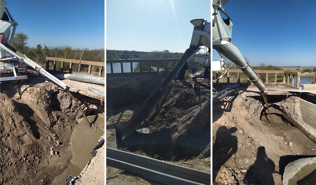 Se realizó recientemente el volcado de hormigón sobre grietas y en el terraplén. Este viaducto de la ruta 50S es de suma importancia para la transitabilidad de los productores y vecinos del lugar.